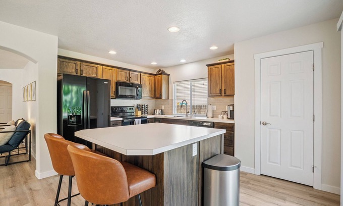 Whether you're in town for work, relocating, or just need a comfortable place to land for a little while, this spacious 8-bedroom home is designed to make sort or extended stays feel easy. It sleeps up to 18 guests and has everything you need for longer visits, group trips, or family gatherings.
