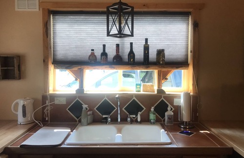 This is a peaceful little getaway with a lot of options. The home is nestled in the trees right on the Willow Creek Greenbelt, with a trail, ancient trees, and babbling Willow creek. The greenbelt is accessed from the back of the lot. Amidst the beautiful juniper, piñon, and ponderosa pines on the lot are beautiful mountain views from the back yard and the house. It a perfect place to reconnect with nature. There is a very comfortable large living room with stairs to the bedroom that has a peaceful patio for your morning tea or coffee. The living room goes into the kitchen/dining room area and also the bathroom. The property is surrounded by beautiful trees and mountain views from the bedroom. The bedroom is on the second floor and there is a steep staircase (with a sturdy hand rail) to get to it.