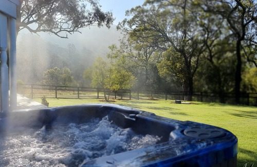 Cadair Cottage consists of two romantic luxury spa cottages in the Hunter Valley, NSW, AU. There are two identical and magically secluded cottages on 10 acres with magnificent valley views of the Hunter River. (Please also view Cadair Cottage 2 at https://www.stayz.com.au/holiday-rental/p4847243 - the reviews against this cottage are legacy reviews from Stayz and refer to both cottages)Tastefully separate and secluded to ensure ultimate privacy for your stay, you can enjoy your complimentary bottle of Hunter Valley wine as you sit in the outdoor spa and soak up the views of the valley, or study the stars at night. The cottages are 15 minutes to the start of the vineyards. Each cottage has 2 bedrooms with queen size beds and one fold away bed (Available on request), sleeping a maximum of 5 people. The outdoor spa is absolutely luxurious and will ease away all the aches and stresses of modern day living. Towels and linen are provided. Minimum 2 night stay. All guests must be booked in at time of reservation. There is a minimum booking of two nights - three nights on long weekends and over Christmas.