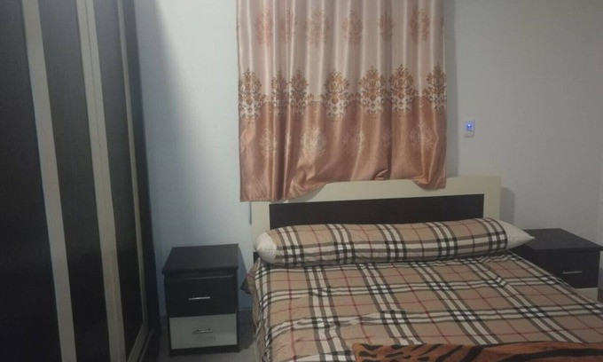 The apartment consists of two bedrooms, a lounge and a kitchen .. It is furnished Hai Lux .. and there is a room with a large bed and a mechanic ... The second room has two separate beds And the bathroom Super Lux ... and also hot water .. And also has a fully equipped kitchen ... and also a tea heater or Nescafe .. And refrigerator .. And automatic washing machine .. And all the needs of the house is fully