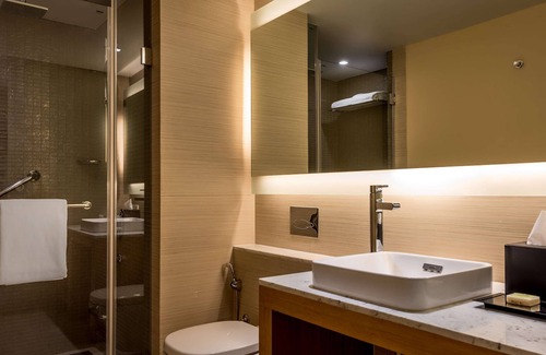 Hyatt Place Pune/Hinjawadi offers 117 accommodations with minibars and safes. Accommodations offer separate sitting areas. Pillowtop beds feature Egyptian cotton sheets and premium bedding. 42-inch LED televisions come with premium satellite channels. Guests can make use of the in-room refrigerators and coffee/tea makers. Bathrooms include showers with rainfall showerheads, bathrobes, designer toiletries, and complimentary toiletries.