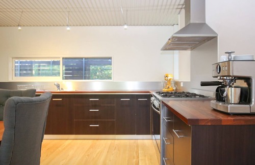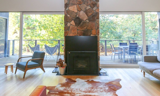 Warm by the wood fire in winter with a glass of local red or enjoy the afternoon breeze through the sliding doors on a summer's day after a dip in the river.