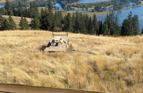 A picnic table lookout - to eat meals while soaking in the view. The table seats 6 and there’s plenty of room to bring additional chairs spend the table, if needed.
