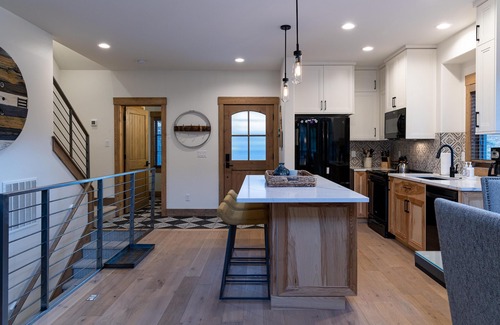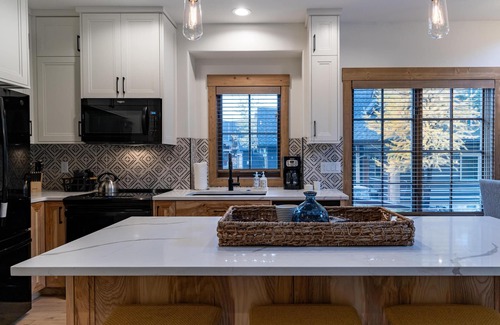 Mogumby, a roomy brand new, ski in/ski out, 2 bedroom 3 bathroom townhome, is an ideal location to spend your vacation. This well-appointed home has comfortable mountain modern furnishings, high vaulted ceilings, and lots of windows to let the sun shine in. The kitchen comes well stocked with full sized appliances, granite countertops, stone backsplash, and an island with bar stools. When it’s time to rest your head and recharge for the following day of fun there are two bedrooms to choose from. The master bedroom has a gorgeous king sized bed and an en-suite spa like bathroom with a deep soaker tub and a walk in shower. The second bedroom has a queen sized bed, with a queen pull out sofa. You also have a queen plus pull out sectional in the family area of the lower area. You’ll enjoy sitting out on the deck in the sunshine while you take in the beautiful scenery. For your convenience there is a single car garage and washer/dryer in this home.
