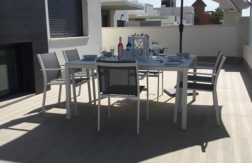 Up on the solarium there's large outside sofa and table with beautiful panoramic views of the coast & mountain, perfect to watch the sunset.
