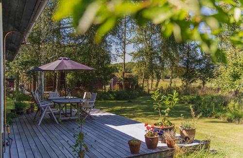 The holiday home is equipped with everything you need for a comfortable stay. After a day of activities, you can relax on the open terrace or in front of the fireplace on cooler evenings.