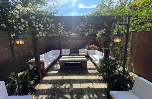 This beautiful townhome is situated near Montrose Park in Georgetown. The exterior of the home is just the beginning of the charm. Large entry foyer opens into a sun filled living room and charming updated kitchen and dining room. Kitchen has been updated and has a breakfast bar, perfect for enjoying your coffee. Sunny living room with a wood burning fireplace opens to a large, private garden. On the upper level you will find the primary and secondary bedrooms, both accompanied with ensuite bathrooms. There is also a home office on this level, perfect for the work from home lifestyle. Washer and dryer are located on this floor as well. All bathrooms are updated with Waterworks fixtures. Basement level has an au-pair suite in the rear with a kitchenette, washer and dryer, den and plenty of storage. Garden in the rear has a hardscape patio with custom seating and a fire pit.