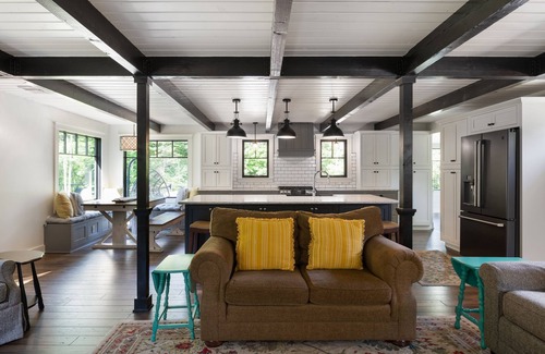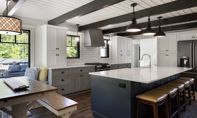 The home has been tastefully renovated with all the highest end touches, including a built in dining nook that overlooks the beautiful backyard and a bubbling stream in the distance. This, combined with a fireplace on the outside deck and a fully stocked kitchen, encourages both gathering and conversations inside and out. The propane fireplace is ideal for curling up next to in the winter. The master suite has a private balcony that overlooks the wooded backyard. There are washers and dryers in both the upstairs master suite and downstairs in the utility room. Both are at your disposal during your visit for any laundry needs. There are plentiful bath and beach towels for all guests throughout your stay. We have a large game closet for all age ranges and a multitude of outdoor games, as well, in the shed that can be taken out in the summer to be used in the yard. There are way too many amenities to name here, so please don't hesitate to reach out to inquire about any specific requests or questions.