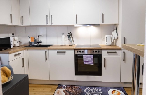 Enjoy the comfort of this modern holiday apartment on the 1st floor with spacious bedrooms and a stylish, well-equipped bathroom including a washing machine. Relax in the cozy living room with a wood-burning stove after an eventful day. Ideal for families or couples who appreciate contemporary luxury and comfort