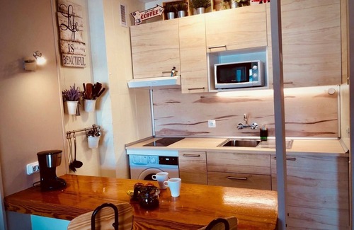 Apartment composed of a living room with open fitted kitchen, a bedroom and a bathroom.