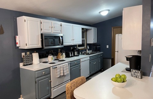Enjoy back deck, wifi, streaming television, a fully stocked kitchen, outdoor grill and indoor gas fireplace ( gas fireplace available in the cold weather only)
