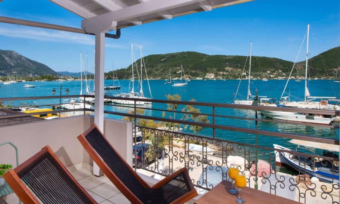 In a great location just outside Nidri town, enjoy the waterfront of Vlicho Bay and the fabulous sea views from the apartment and its spacious balcony.