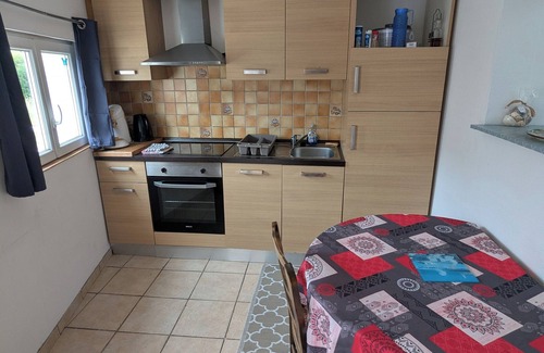 - a fully equipped kitchen (fridge, oven, extractor, microwave) with table and chairs