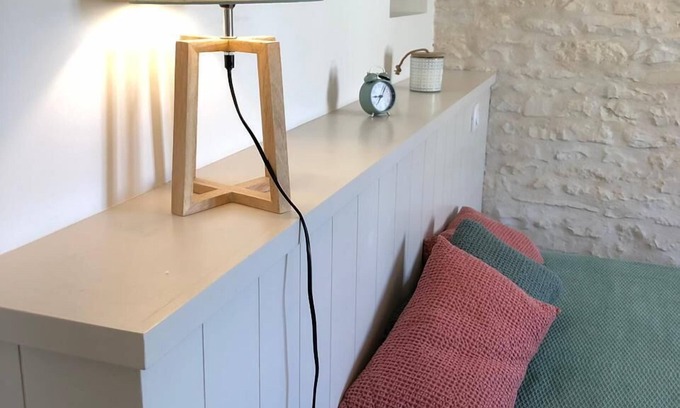 The house was completely renovated in 2014 while preserving the charm of the Rhetish stone and the old parquet floors. Walls in gray paneling and associated wardrobes made to measure in a beautiful Rhetan house spirit. The house is in excellent condition and very well insulated for stays outside the summer season.