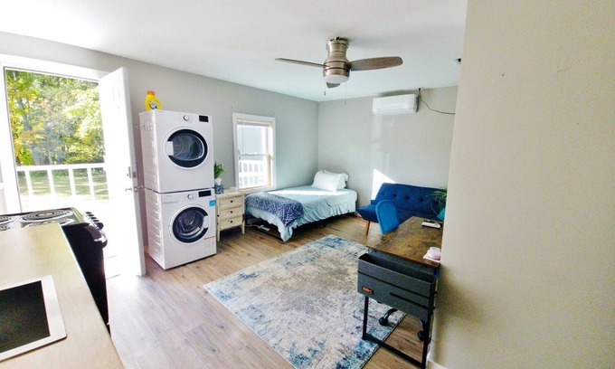 This is a very small but modern one bedroom. It is walking distance to Main Street in Norway. There is a nice town walking path just behind the house. Large yard great for a dog. Parking in he dirveway. This is across from the police station and a very nice quiet town. Everything is included, AC and Wifi included.