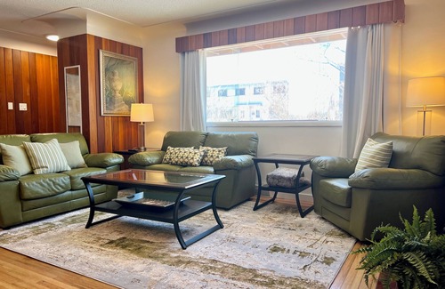 This charming 3-bedroom bungalow is located less than a 5-minute drive away from the Hospital and Downtown PG! Guests can enjoy a well-stocked kitchen, a comfortable living area with plenty of seating, and beautiful parks within walking distance of their front door! Whether travelling for business, or for pleasure, this home will be a great fit for you!