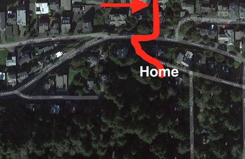 There is a private forest on the deck side of the house (so you have complete privacy when you sit around the fire watching the ocean and the puffins), woods behind it, and the house on the third side is occupied about 2 weeks per year. It is a very private area.