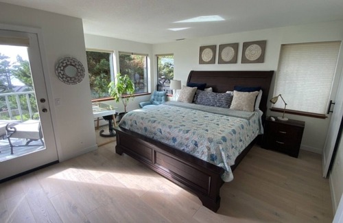 You can watch the puffins learn to fly off of Haystack Rock, the bald eagles circling, and even the whales breaching the surface, all from your bed! Of course you can see all this from the living and dining rooms as well.