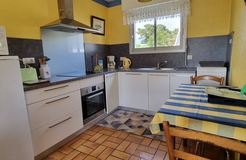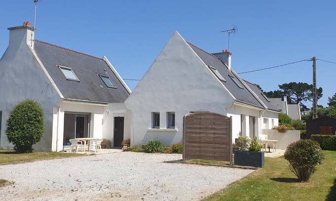 Semi-detached houses of 80M2 each which can be rented individually or for 1 large family - enclosed land of 1000M2 in all with a separation of the terraces by wooden panels in order to preserve the privacy of each - 100M from the sandy beach of Pendruc at 4 kms from Trégunc and its shops and 10 kms from CONCARNEAU and its entertainment - paths along the coast for superb walks - Separate entrances and parking for each house - New in 2018: Wi fi access included in each villa terrace with table and chairs - bbq and parasol - Living room with sofa armchairs coffee table TV bay window on terrace Dining area with table and chairs Equipped kitchen area refurbished (early 2016) with fridge-dishwasher - microwave - electric oven - induction hob - Washing machine - Separate WC - Shower room - basin - tiled floor FLOOR 1 bedroom 1 bed 1M40 - 2nd bedroom 1 bed 1M40 and 0. 90 cm -