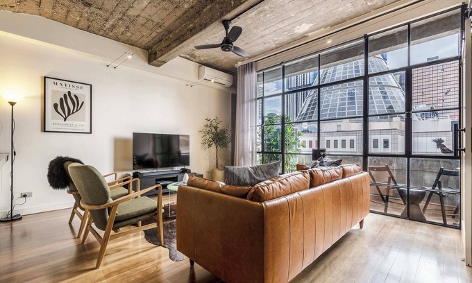IMMERSE YOURSELF IN THE ARTISTIC OASIS OF THIS ONE-OF-A-KIND URBAN WAREHOUSE RETREAT, NESTLED RIGHT IN THE PULSATING HEART OF MELBOURNE'S VIBRANT CITYSCAPE