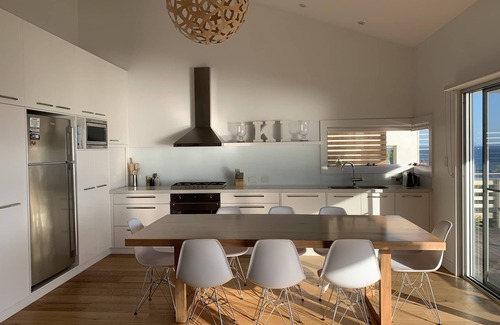 This architecturally designed beautifully appointed house sleeps 11 and can easily accommodate two families. It comprises four bedrooms, two bathrooms, gourmet kitchen, and dual entertaining areas upstairs and downstairs.