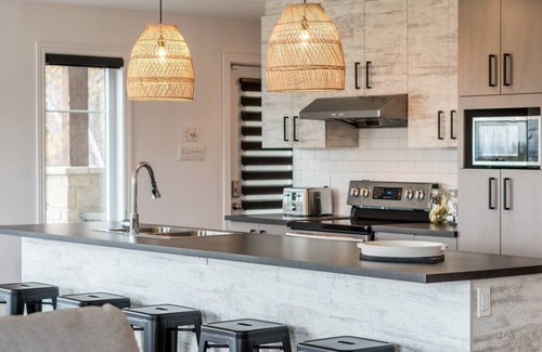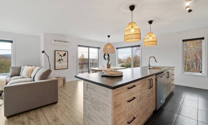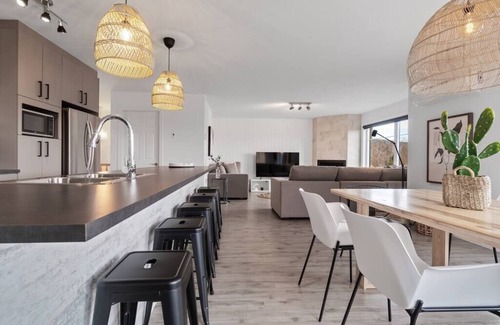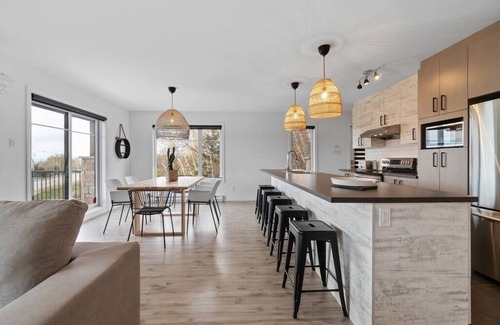 Welcome to BoHo; airy and light, it is your relaxation area with family or friends where everything has been thought out to make your stay pleasant. Atmosphere to spare, storage for the whole family and a 360 view from the mountain to the river that takes place in the distance. 3 minutes from the Mont-Sainte-Anne mountain, 2 minutes from the golf club, 10 minutes from the canyon of the falls, 25 minutes from the Massif de la Petite Rivière-St-François, 40 minutes from Quebec.
