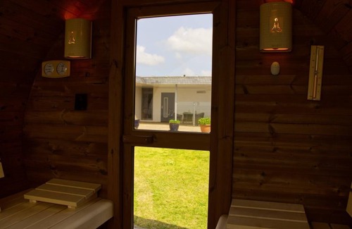 The luxurious bungalow with sea view has several special features. The shower in the bathroom is also a steam bath, where you can sweat and warm up easily when it is a bit colder outside. In addition, there is a spacious barrel sauna in the garden, where you can sweat and relax to your heart's content while looking at the sea.