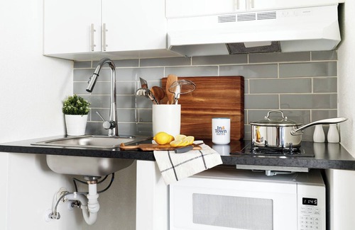 Intown Suites Extended Stay Tucson Az offers 20 accommodations with air conditioning. Kitchenettes offer full-sized refrigerators/freezers, microwaves, and separate dining areas. Bathrooms include bathtubs or showers with rainfall showerheads and hydromassage showerheads.