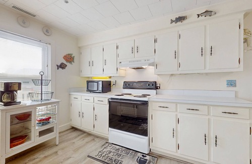 At home, soak in the river views while lounging on the private deck, playing on the back lawn, or unwinding in the furnished sunroom. Cheerful coastal decor sets the mood for your stay while home essentials like a full kitchen, central air-conditioning, and free WiFi provide complete modern convenience.