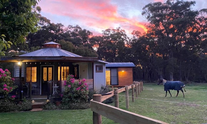 Ionaforest Yurt offers accommodations in Wingello, 27 miles from Bowral Golf Club and 27 miles from The Bradman Museum & International Cricket Hall of Fame. The property is around 29 miles from Fitzroy Falls, 21 miles from Moss Vale Golf Club, and 25 miles from Bendooley Estate Book Barn. There's an outdoor fireplace and guests can use free Wifi and free private parking. Featuring a balcony with garden views, this farm stay also includes a satellite flat-screen TV, a well-equipped kitchenette with an oven, a microwave, and a toaster, as well as 1 bathroom with a walk-in shower and bathrobes. The property has an outdoor dining area. There is a garden with a barbecue at this property, and guests can go hiking nearby. Corbett Gardens is 27 miles from the farm stay, while Bradman Oval is 27 miles from the property. Shellharbour Airport is 63 miles away.
