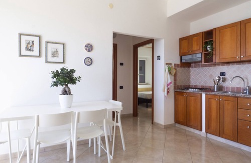 The apartment is located on the raised ground floor, offering a breathtaking view of the sea without compromising privacy. From the entrance you access the living area, a bright and well-furnished space that includes a functional kitchenette, equipped with all the appliances necessary to prepare meals in complete autonomy. A comfortable sofa creates a relaxing corner, perfect for enjoying the sea view or watching TV.