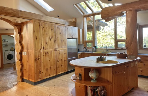 Island log home with expansive forest, lake and mountain views is located in Bowen Island. Island log home with expansive forest, lake and mountain views provides accommodation, featuring Kitchen, Sports/Activities, Bedding/Linens, among other amenities. This House features Kitchen, Sports/Activities, Bedding/Linens, to make your stay a comfortable one.