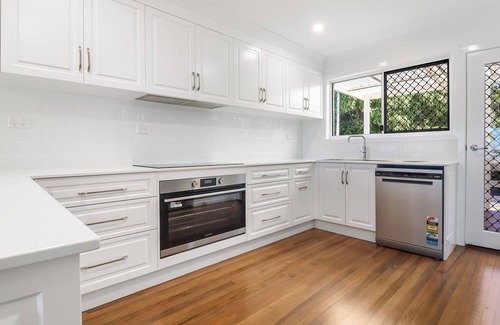 • Entertainer’s kitchen with a wrap-around bench and quality appliances