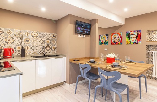 This refined apartment in the heart of the historic center of Monza blends the charm of the past with modern comfort and contemporary design furnishings. Located on the first floor of a historic building, the apartment is an ideal place for couples, families, or small groups looking to enjoy an exclusive experience.
