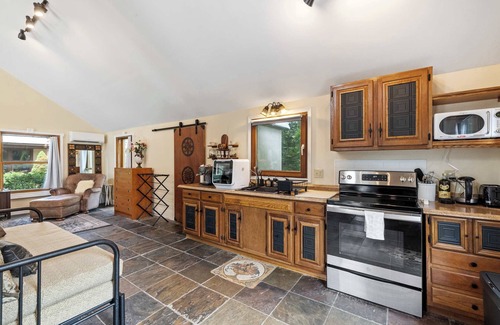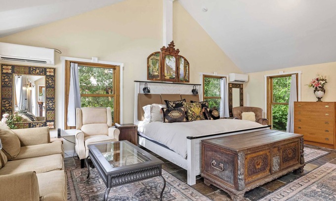 Step inside this spacious, single-level studio sanctuary and feel immediately at ease. Bathed in natural light, the open layout features warm, curated décor with subtle European touches, creating a one-of-a-kind ambiance perfect for couples, solo travelers, or small groups. Whether you're lounging on the plush king-size bed or relaxing on the luxurious king-size sleeper sofa, comfort is front and center.