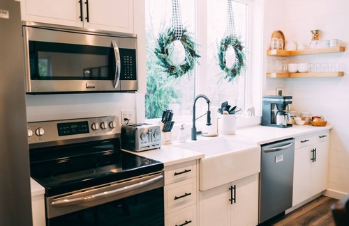 Full kitchen with vaulted ceilings and our great room has a cozy gas fireplace. WiFi for Netflix, smart TVs are in all 3 bedrooms and the great room.