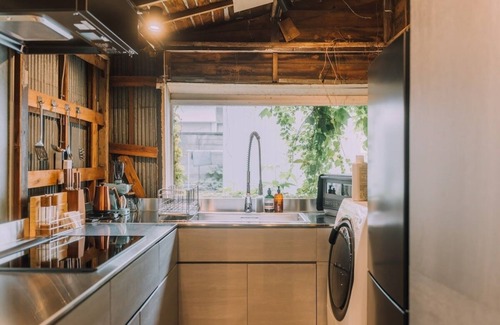 Ivy Harajuku: Urban Steel Tea House, a tranquil yet stylish escape nestled just steps from the vibrant heart of Harajuku. This beautifully restored traditional wooden house effortlessly blends historic Japanese aesthetics with an industrial chic atmosphere, creating a unique stay unlike any other.