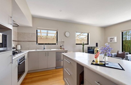 The townhouse is sleek, modern and practical with all the comforts of home. The open plan kitchen/ living/dining space is light and bright with large glass doors that open onto your own private courtyard. There is a gas BBQ and outdoor dining area to seat 6. The kitchen is fully equipped and includes a Nespresso coffee machine, dishwasher and microwave oven. There are gas hotplates and an electric oven. There are 2 TV’s (1 Smart), DVD player and DVDs, toys, games, books and a fully equipped laundry with a dryer. The bedrooms are generous in size and superbly comfortable. The King master bedroom with ensuite and outdoor shower is located on the ground floor, while the two upstairs bedrooms feature King beds that can be split into two singles, offering flexible sleeping arrangements. With 2 bathrooms and three toilets, this is the ideal house for small groups or two families. Jacaranda Lane has two separate living areas, across the two floors allowing everyone space to relax.