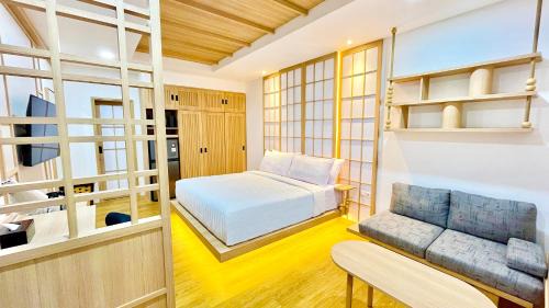 GeneralKey card access, Air conditioningBathroomToilet paper, Towels/Sheets (extra fee), Private bathroom, ToothbrushMedia & TechnologyFlat-screen TVLiving AreaSofaKitchenDining table, Electric kettleViewCity viewFood & DrinkBottle of water |