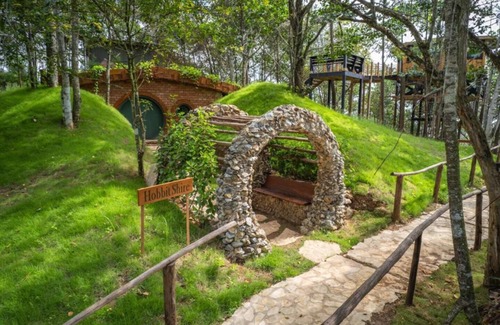 The Hobbit Cottage seems drawn from the pages of a storybook. Its iconic round green door, quaint moon gate, and earthen architecture lure you into a world of enchantment.