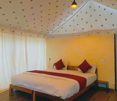 Offering a garden, Jawai Horizon Camp offers accommodations in Bera. There's a sun terrace and guests can access free Wifi and free private parking. A balcony with an outdoor dining area and mountain views is offered in some units. At the luxury tent, units are equipped with a private bathroom. A buffet, à la carte, or vegetarian breakfast is available at the property. Guests may eat at the on-site family-friendly restaurant, which is open for dinner, lunch, brunch, and cocktails. Guests can take advantage of yoga classes held in house. Bike rental and car rental are available at the luxury tent, and the area is popular for cycling and walking tours. The luxury tent also features outdoor fireplace and a picnic area for a day outdoors. Maharana Pratap Airport is 81 miles from the property, and the property offers a paid airport shuttle service.