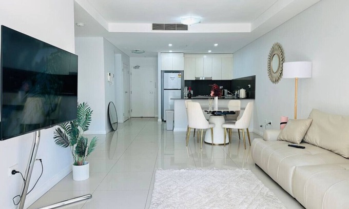 This stylish apartment offers everything you need for a relaxing stay, including a private free underground parking space for your convenience. Ideally located just a short walk from the train station, shopping centres, and a wide variety of delicious local eateries, you’ll enjoy the best of both comfort and convenience. It’s only one stop to Sydney Domestic Airport and two stops to Sydney CBD—making it a perfect base for both business and leisure travelers.