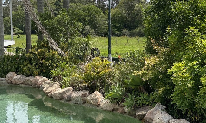 Escape to the country and visit this peaceful cottage set on a 16 acres property. Newly renovated with new bathroom and kitchen. Stone bench top. Washing machine. New bedding and linen provided. Two living areas one with pool table and dart board. Fully self contained and adjacent to main house on property. Large resort style pool. Opposite national park with beautiful walking trails.