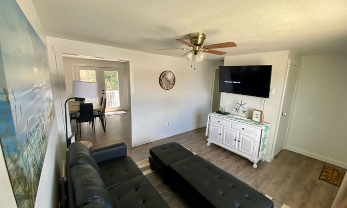 This single level space is decorated in a coastal theme with new kitchen furnishings, sofa and king sized bed. The house is fully furnished with everything you should need! It has a washer / dryer and amenities to make you feel at home.