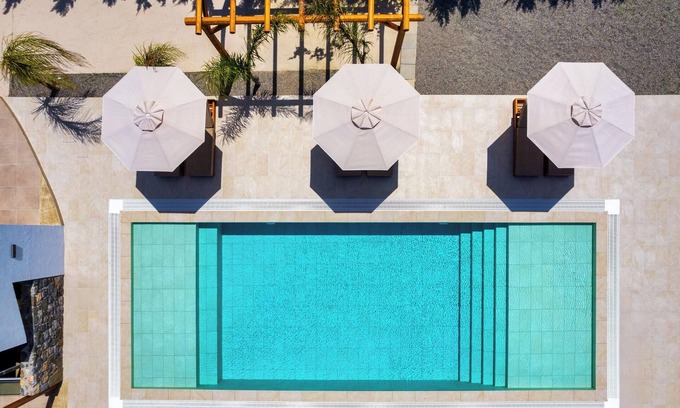 Johannes Luxury Villas host up to 8 guests, providing generous space and contemporary conveniences. Ideal for families or groups, the villa boasts sophisticated interiors, a well-equipped kitchen, and cozy communal areas