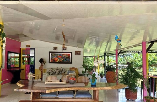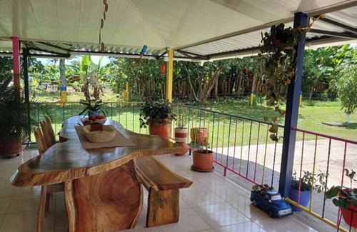 Located in a village, this 2-bedroom, 2-bathroom vacation home brings all of Montenegro within your reach. Fans of nature and the outdoors will love being 50 minutes by car from Cocora Valley and 48 minutes from Main Square. With convenient onsite parking, you'll be ready to make the 13-minute drive to Coffee Park or the 28-minute drive to Centenario Stadium.
