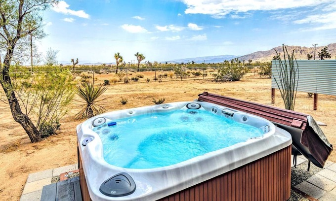 The views and stargazing from the outdoor spa is spectacular, and with a distant view of city lights from the town of Joshua tree.