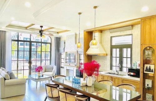 JOYY Villa 4PN-3WC-5 giường NovaWorld Phan Thiết is a recently renovated villa in Bình Tú where guests can make the most of the infinity pool, free Wifi, private beach area, and garden. This beachfront property offers access to a balcony. The accommodation provides a shared kitchen and full-day security for guests. Providing a terrace and lake views, the villa includes 4 bedrooms, a living room, satellite flat-screen TV, an equipped kitchen, and 3 bathrooms with a walk-in shower and a bidet. A private entrance leads guests into the villa, where they can enjoy some fruit. The property has an outdoor dining area. During warmer months, you can make use of the barbecue facilities and eat on the private patio. The villa has a picnic area where you can spend the day outdoors. Tien Thanh Beach is a 18-minute walk from the villa, while Phan Thiet Train Station is 8.7 miles from the property. Lien Khuong Airport is 91 miles away, and the property offers a paid airport shuttle service.