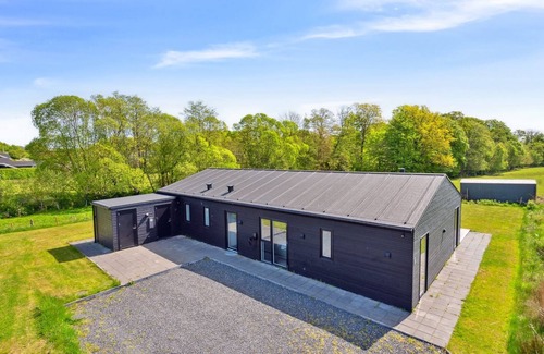 Single-family house, built in 2023. 300 m from the sea. Private: natural state property 970 m2. Hot tub, barbecue. In the house: sauna, trampoline, washing machine, tumble dryer. Parking at the house. E-charging station. Grocery 6 km. Golf course 10 km. The owner does not accept any youth groups.