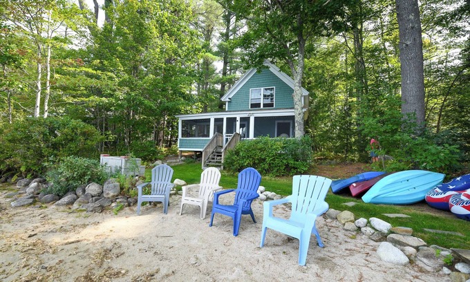 Experience the serenity of Tripp Lake at this recently renovated cottage, situated just 20' from the water's edge. Boasting picturesque sunset views and a sandy, gradual entry into the lake, this is the ideal spot to relax and unwind. When the stars come out, kick back on the spacious screened porch or gather around the campfire while roasting marshmallows. Three kayaks are provided for those who want to explore the lake, and the dock can hold up to a 16' boat for more exploration. For even more excitement, the Oxford Casino, Oxford Plains Speedway, and Lewiston/Auburn area are all just a short drive away. Get ready to make some unforgettable memories at this Maine cottage!